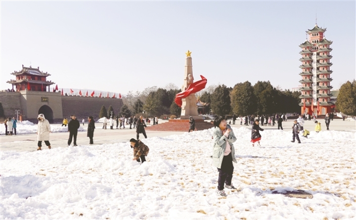 春節(jié)期間,會寧縣紅軍會寧會師舊址迎來大批游客,各地游客在會寧縣感受紅色文化,厚植家國情懷,歡度假期。圖為游客在紅軍會寧會師舊址游玩的場...